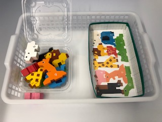 色を合わせたり、形を合わせたり、同じところに分類したり。