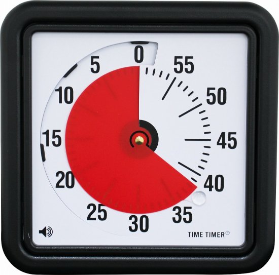 また、タイムタイマーというものがあり、これを使うと時間が減っていく様子が目でわかります。