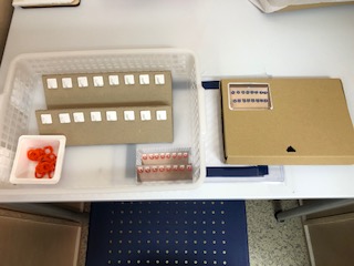 枠に合わせて課題を置くので、まっすぐ座って作業できるようになりました。