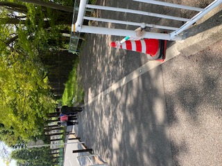 〇公園にあるパイロンの重りを向きを直す。(以下写真、しましまパイロンの黒い部分。)