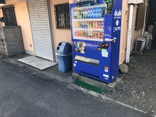 〇自動販売機横のごみ箱の位置を直す。(ほぼセットで置いてあるゴミ箱をまっすぐに。)